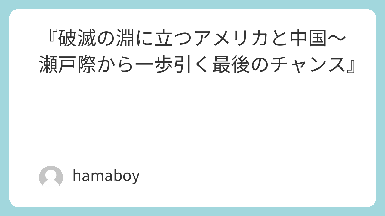 ただ、アメリカでは、キリスト教の没落の隙にサヨク思想が紛れ込んでの倫理感崩壊と分断や内戦、中国は専制体制の経済崩壊という国家存亡の危機にあり、中国とは個別のディールはあるでしょうが、アメリカは否が応でもアメリカファーストにに取り組まなければならない。日本も他人事ではありません。曰く、