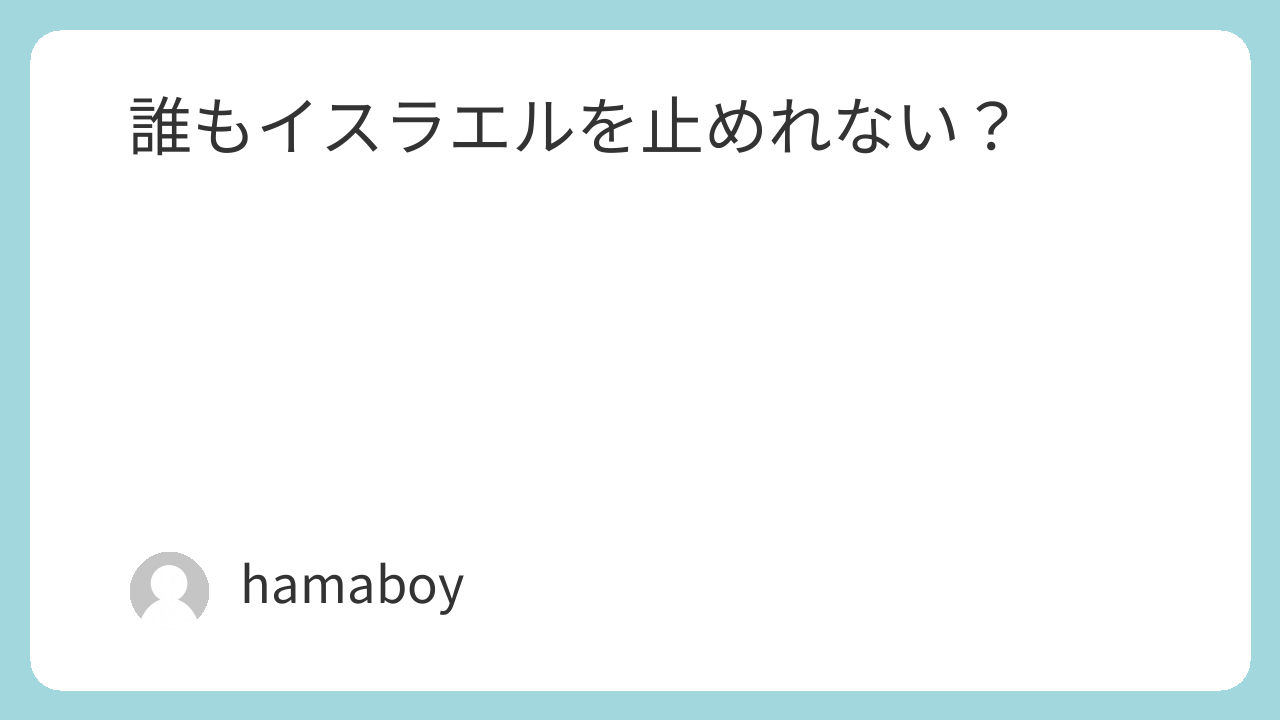 ・カタールでハマスの調停責任者を、イスラエルが狙い撃ちしたということは、イスラエルは明らかに戦争を止める気がないということ。イスラエルの狙いは、