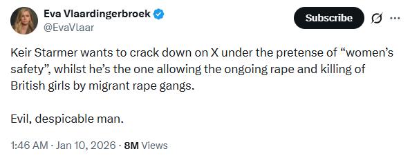 その女性はEva Vlaardingerbroek(エヴァ・フラールディンガーブルック)というオランダの右派活動家。彼女はタッカーカールソンの番組にも出演して「原因がハッキリしないが、(そういう)手紙が来た。、思い当たるとしたらスターマーのことを書いたことぐらいかな」と。