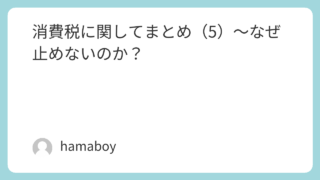 すべて消費税に関してまとめ(3)~消費税は間接税? (3)消費税は直接税か間接税か:・よくある啓蒙サイトに「消費税は間接税です。何故なら私達がお店などで買い物をする際に消費税を支払いますが、納税者は私たち消費者ではく、そのお店になるからです。」と。しかし、これまでの議論で分かるように、これは... 2025.08.04すべて国内政治経済