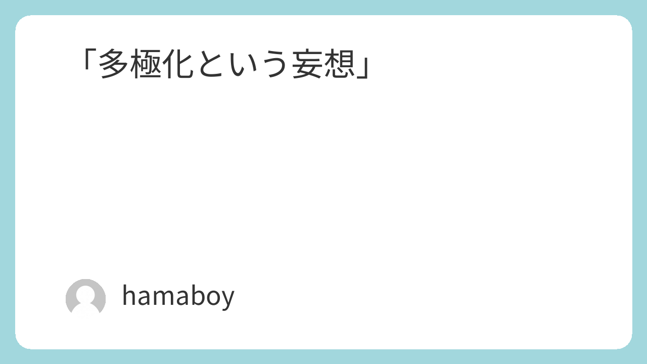 ・アメリカから中国、ロシアからインドに至るまで、世界が多極化の時代に入ったという合意があるとの話がある。比類なきアメリカの地球支配が終焉し、今や世界的な権力が複数の中枢(=極)に分散していると言う。トランプ大統領の就任当初、マルコ・ルビオ国務長官は、「ワシントンが唯一の超大国としての立場は歴史的に見て正常ではない。国際システムが多極化に向かうのは必然である。」と述べた。